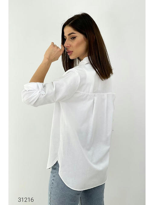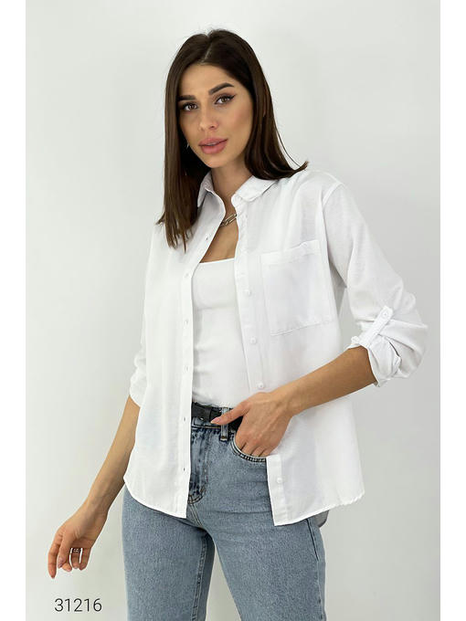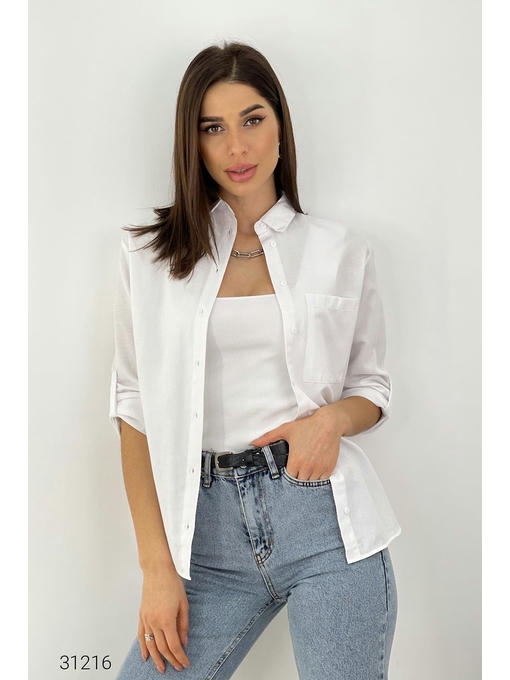 Свободная рубашка из качественного коттона, производства Турции. Отложной ворот, заниженная линия плеч, накладной нагрудный карман. Манжеты и планка на пуговицах. Состав ткани: 64% – коттон, 36% – полиэстер.