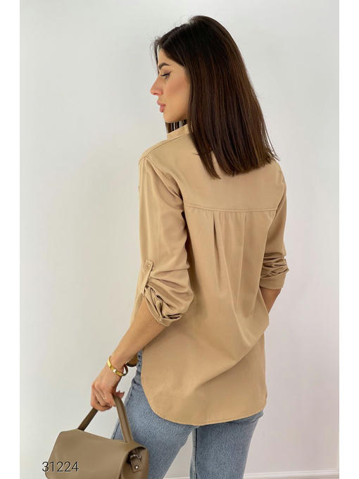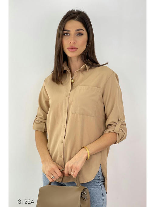 Свободная рубашка из качественного коттона, производства Турции. Отложной ворот, заниженная линия плеч, накладной нагрудный карман. Манжеты и планка на пуговицах. Состав ткани: 64% – коттон, 36% – полиэстер.