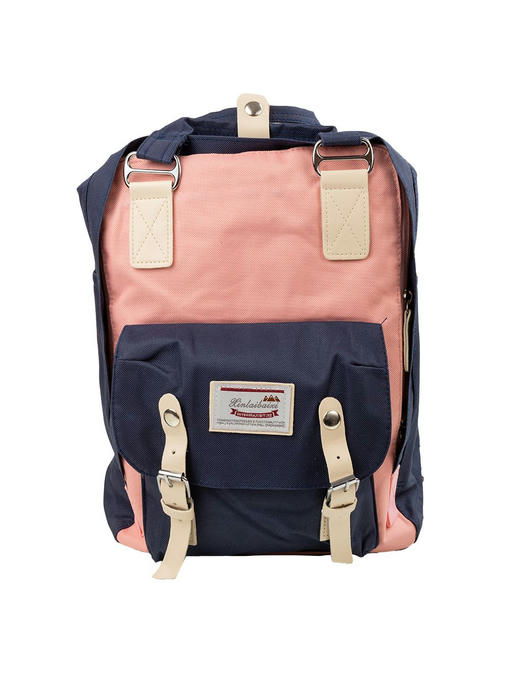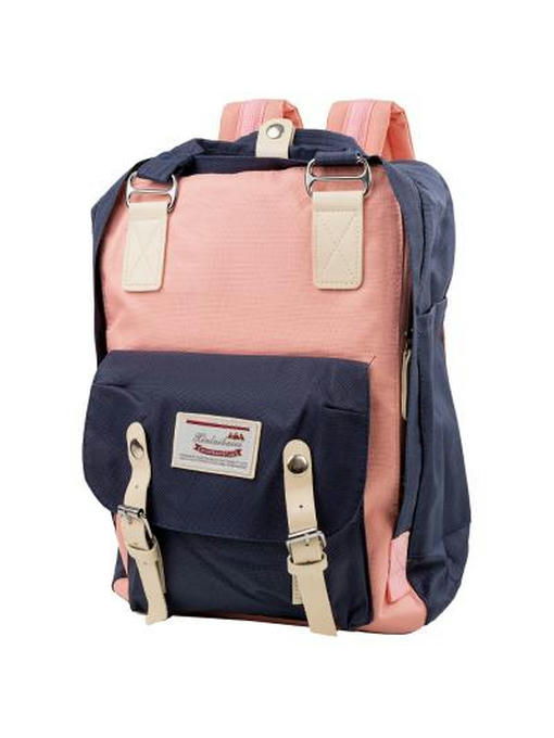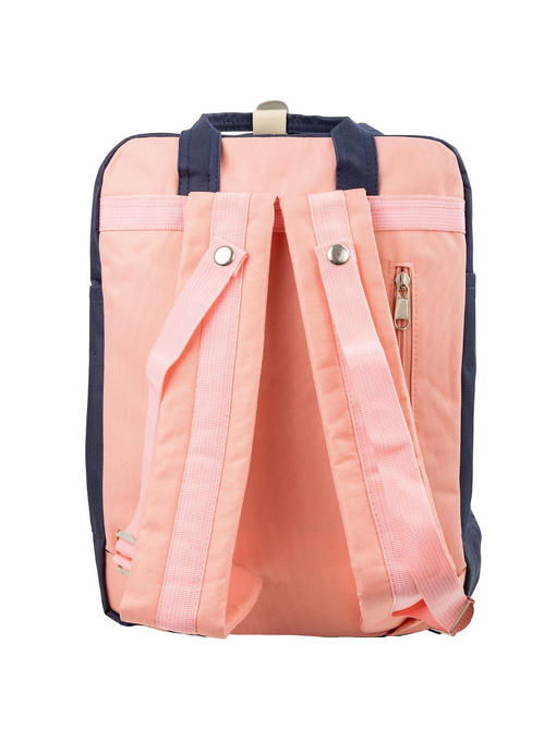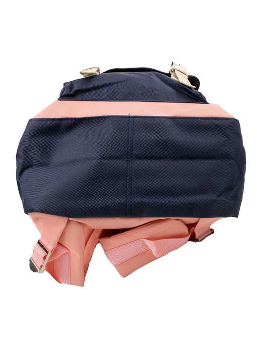 Цветовое решение, в котором выполнен этот рюкзачок, радует практичностью притемнённого синего и нежностью светлого розового. Аксессуар выглядит оригинально благодаря конструкции в целом. Объёмистый карман на лицевой стороне закрывается пряжками на ремешках. Ручки крепятся крупными накладными деталями и металлической фурнитурой. Кнопки – крупные, с их помощью можно соединить ручки (их здесь две, и они позволяют свободно носить рюкзак наподобие сумки), пристегнуть свободные концы ремней, которыми регулируется длина лямок. Основное отделение вместительное, закрывается надёжной молнией, внутри – много карманов. Изделие торговой марки VALIRIA FASHION изготовлено из крепкой полиэстеровой ткани, тщательно проработано по всем швам