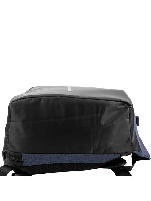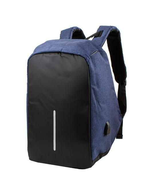 Синие детали, скомбинированные с чёрными, акцентируют внимание на особенностях конструкции этого рюкзака. Компактная городская модель торговой марки VALIRIA FASHION интересна выступающими в сторону спинки боковыми частями – к ним крепятся лямки, под ними скрыта основная молния. Лицевая сторона – ровная, лаконично украшенная вертикальной светлой короткой полоской. Соотношение фактур ткани, контрастность, полученная без дополнительной яркости, стильная немногословность дизайна – этот смарт-рюкзак привлекает оригинальностью и высокой универсальностью. Он подходит для каждого дня, удобен хорошей вместимостью с отделением для ноутбука и ходовым форматом, а также анатомическими лямками и спинкой