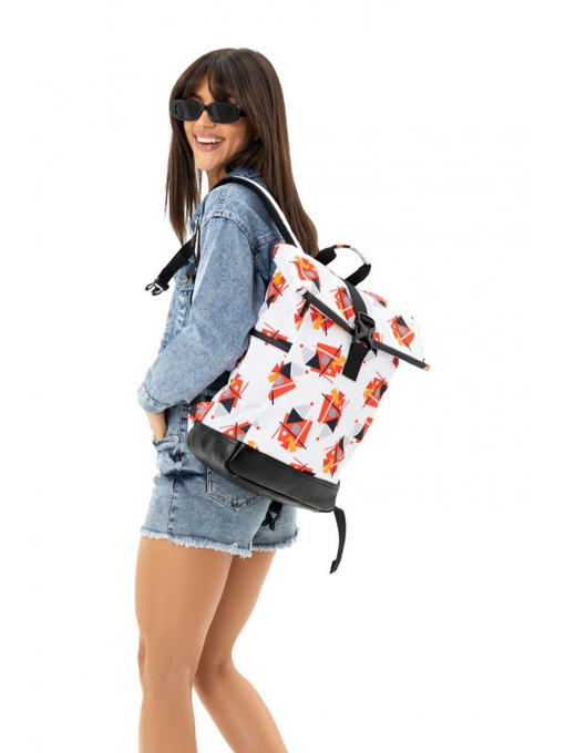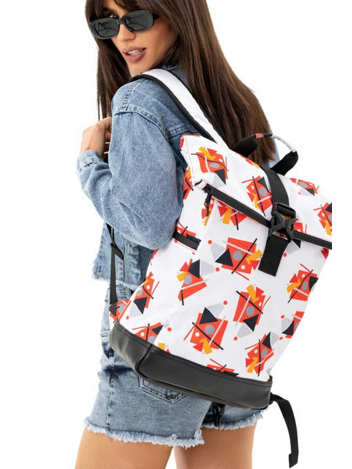 По бокам модели есть карманы на молнии. Предусмотрена ручка для удобного держания рюкзака. Широкие мягкие лямки дополнены ремешком с фиксатором. Удобная спинка, благодаря которой спина не напрягается. Низ рюкзака-ролла декорирован вставкой из надежной эко кожи. Рюкзак сшитый из прочной ткани оксфорд, которая не боится механических повреждений, отталкивает грязь и влагу. Насыщенность и яркость дизайнерского рисунка достигается печатью методом сублимации. Кажется, идеальный рюкзак найден!