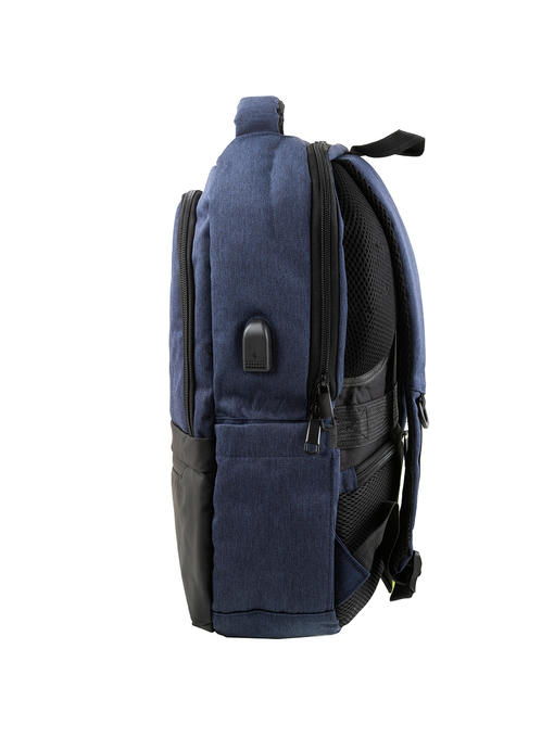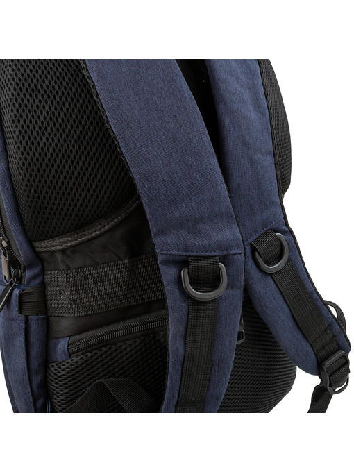 Этот синий рюкзак из ткани практичен и удобен. В модели торговой марки VALIRIA FASHION удачно скомпонованы два материала: более плотный, гладкий дополнительно защищает нижнюю часть лицевой стороны от загрязнений и прочих факторов. Чёрно-синяя цветовая гамма становится еще привлекательнее от присутствия фурнитуры под чернёное серебро. Аксессуар выглядит стильно, вмещает немало вещей, необходимых каждый день. Внутрь помещается ноутбук, для мелких предметов, письменных принадлежностей в дополнительном отделении предусмотрен органайзер и небольшие кармашки. Изделие мягкой конструкции оснащено анатомическими лямками, спинкой с поропластовыми дышащими подушками-уплотнителями. На тыльной стороне расположен горизонтально-прорезной карман на молнии. Смарт-рюкзак, подходящий по размерам для ручной клади, можно прикрепить к выдвижной ручке чемодана, что в путешествиях очень кстати