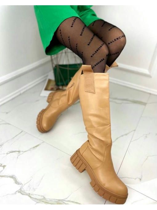 Сапоги демисезонные на тракторной подошве. Утеплены байкой, стелька из байки. “Молния” с внутренней стороны. Высота от пятки: 36 см. Высота подошвы: спереди 3 см., сзади 5,5 см. Размерная сетка: 36-23, 37-23,5, 38-24,5, 39-25, 40-26, 41-26,5 см.