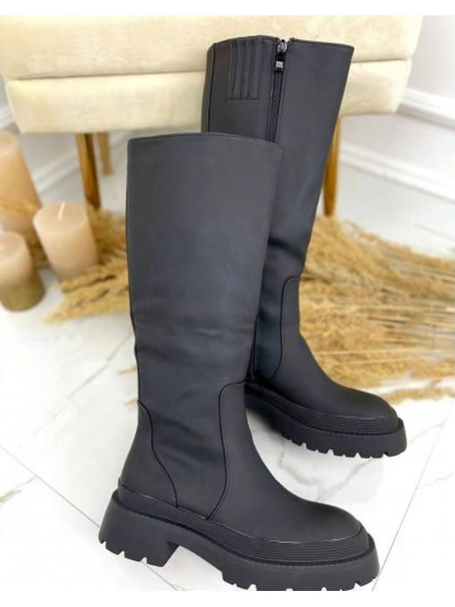Сапоги демисезон, сбоку на молнии.Утеплены флисом. Высота подошвы спереди:4 см.; Высота подошвы сзади 6 см.; Высота от пятки 34 см.; Размерная сетка: 36-23,5; 37-24; 38-24,5; 39-25,5; 40-26; 41-26,5 см.