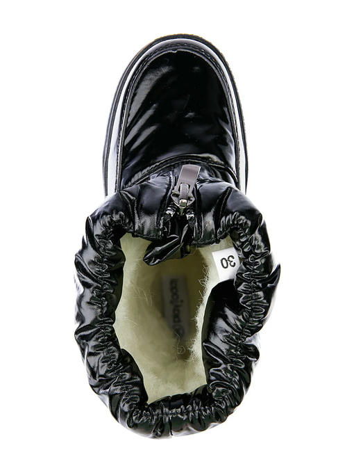 Верх из искусственной кожи и текстильного материала с водоотталкивающим покрытием. Подкладка и стелька выполнены из шерстяного меха 80%. Застежка на молнию. Глухой клапан в области застежки защищает от проникновения влаги внутрь. Формоустойчивый задник поддерживает стопу в правильном положении. Подошва имеет противоскользящий протектор. Съемная стелька позволяет хорошо просушить обувь после прогулки. Рекомендованный температурный режим от 0°С до -15°С
