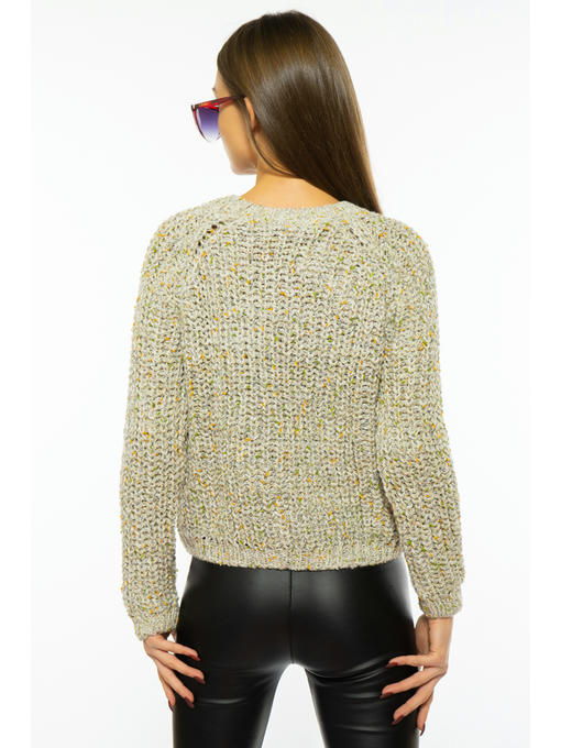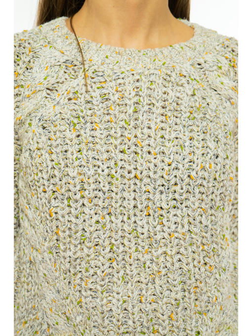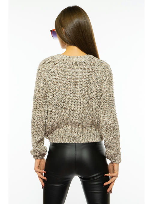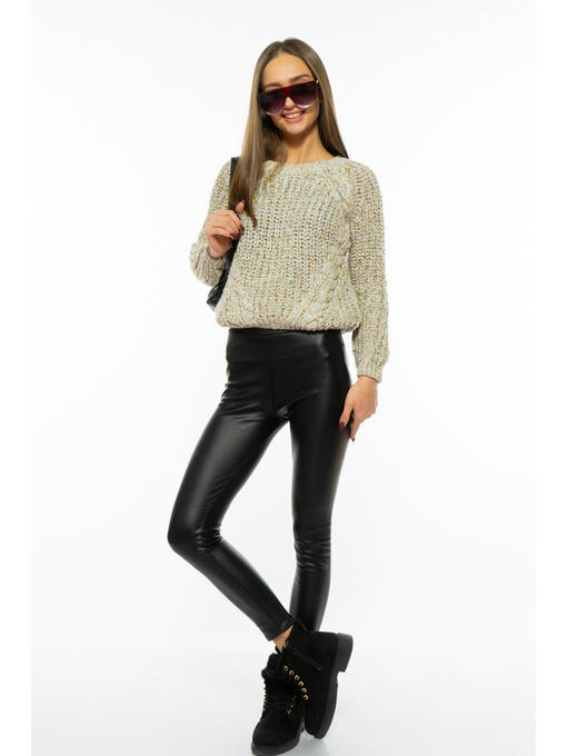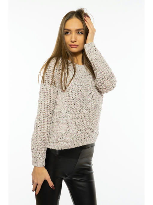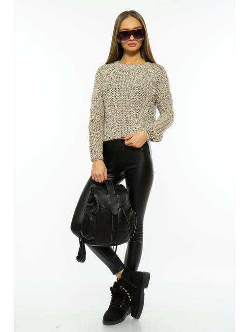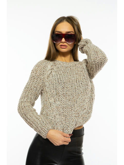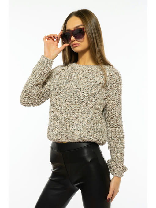 Стильный женский свитер крупной вязки косичкой, выполнен из плотной, тактильно приятной пряжи с вкраплениями контрастной глянцевой нити, что в сочетании с оригинальным фасоном, создаёт великолепный образ изделия.