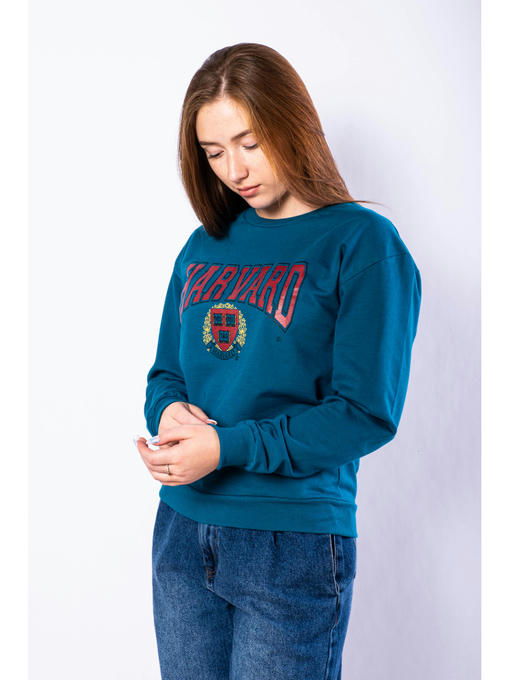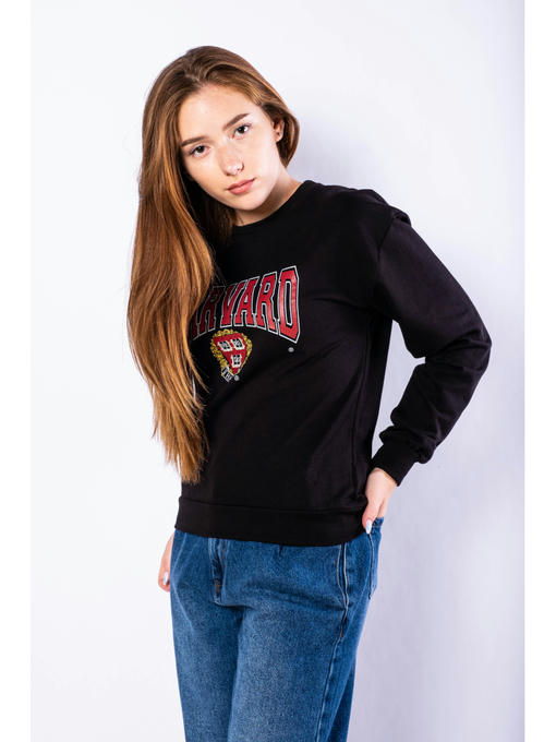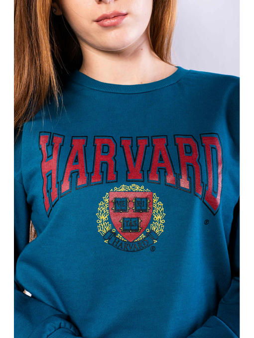 Стильный и универсальный женский свитшот в стиле casual, выполнен из натурального хлопкового трикотажа с добавлением необходимого процента полиэстера для повышения функциональных свойств изделия и эффектно дополнен принтом с изображением логотипа Гарвардского университета. Данная модель, прекрасно впишется в повседневный гардероб любой девушки ведущей активный образ жизни.