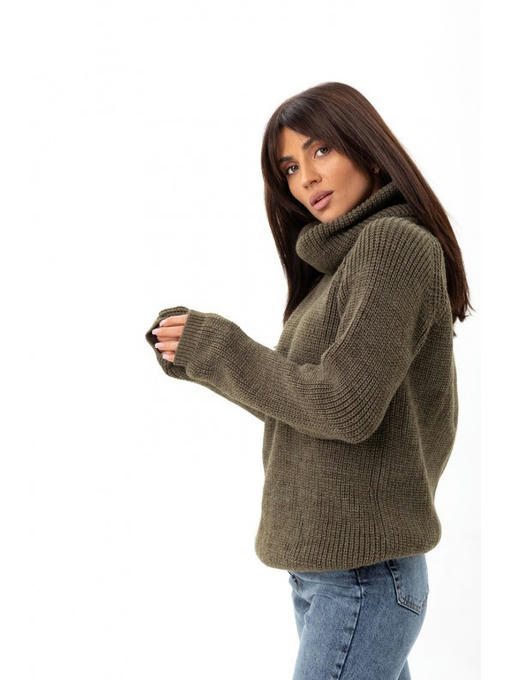 Свободный свитер с высоким горлом хаки