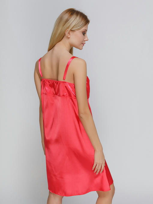 Сорочка женская, из стрейч атласа с кружевом, большие размеры, коралловый