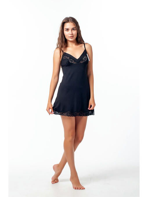 Сорочка женская, вискоза, цвет черный, чуть выше колен. Регулируемые бретели_