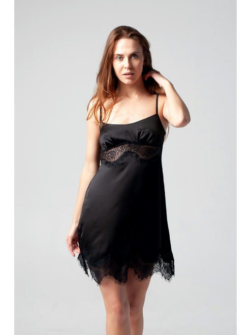 Сорочка женская из шелка Армани с кружевом, цвет черный, очень качественная ткань, регулируемые бретели.