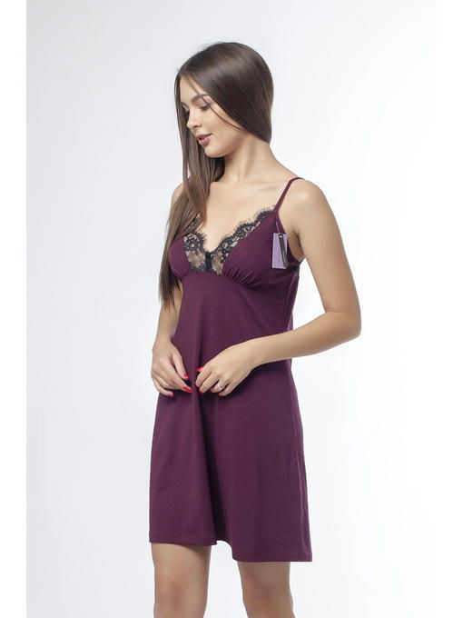 Сорочка женская, цвет марсала с кружевом, хлопок, чуть выше колена.