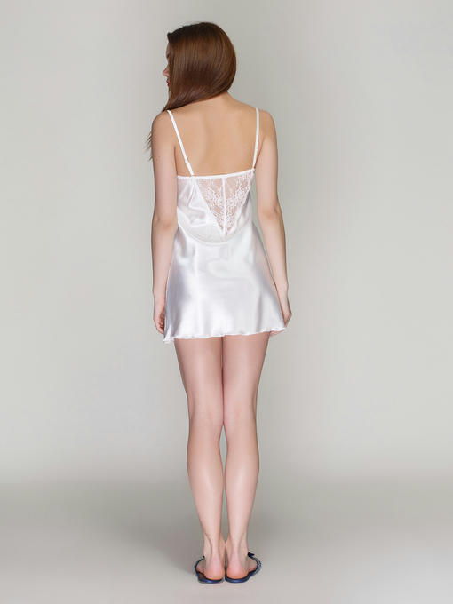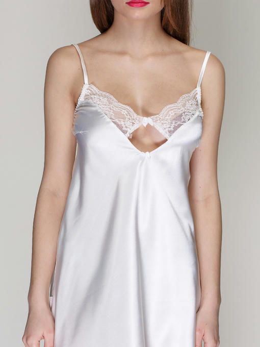 Женская сорочка из стрейч атласа с кружевом, шампань