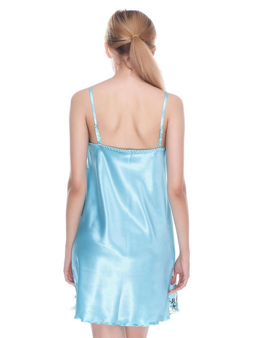 Сорочка женская из стрейч атласа с кружевом, бирюза с черным