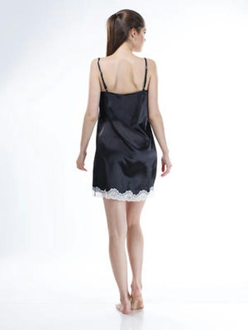 Сорочка из стрейч атласа с кружевом, черный с шампаневым