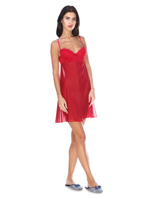 Сорочка из сетки с кружевом, красный