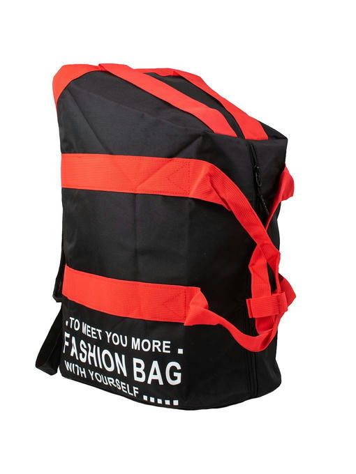 Контрастное чёрно-красное оформление привлекает внимание сразу и к оригинальному устройству этой сумки-рюкзака. Вместительная модель на 47 литров подойдёт мужчинам, станет в гардеробе яркой деталью, универсальной для многих ситуаций. Аксессуар торговой марки VALIRIA FASHION послужит и рюкзаком своеобразной конструкции, и спортивной сумкой. Широкие тканевые ленты красного цвета чётко обозначают на чёрном фоне устройство – расположение ручек, ремней для крепления предметов наподобие тонкой ветровки или небольшого коврика. Лямки при пользовании ручками оказываются внизу, их длину можно укоротить ремнями-стяжками, чтобы они не провисали. Крепкая ткань и фурнитура, аккуратное изготовление с отделкой внутри – FASHION BAG будет выигрышным приобретением.