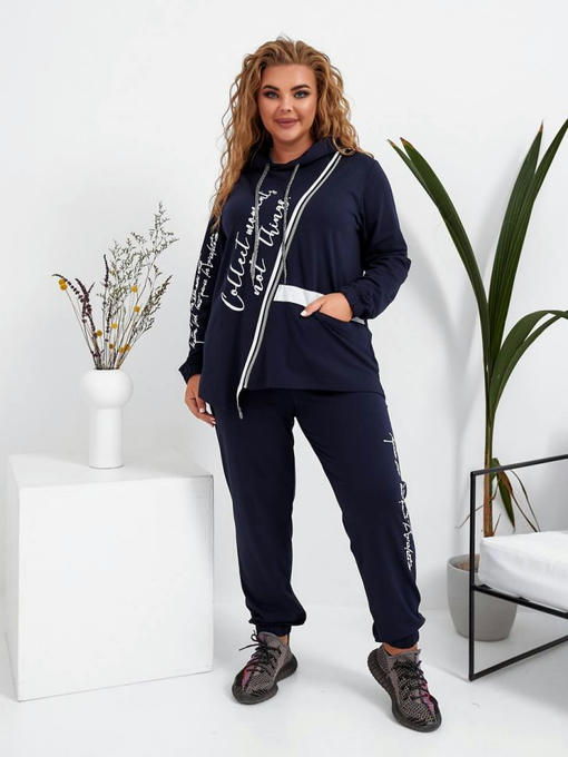 Стильный спортивный костюм с накатом. Кофта с асимметричным низом, декоративная змейка, вставка котон, капюшон