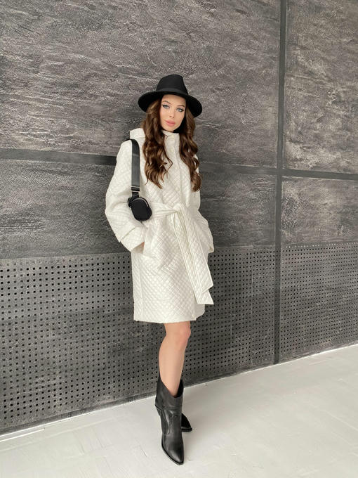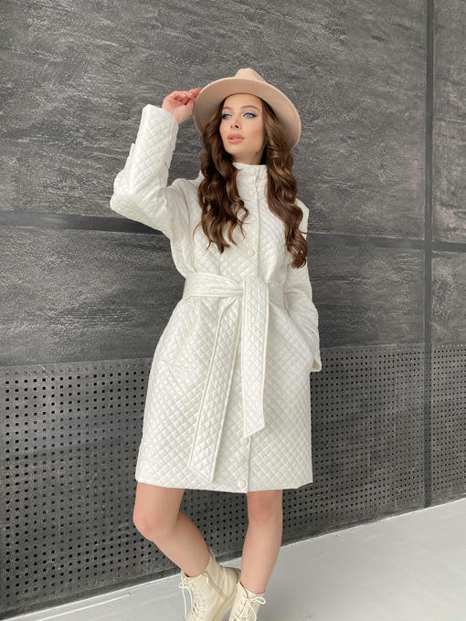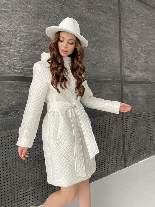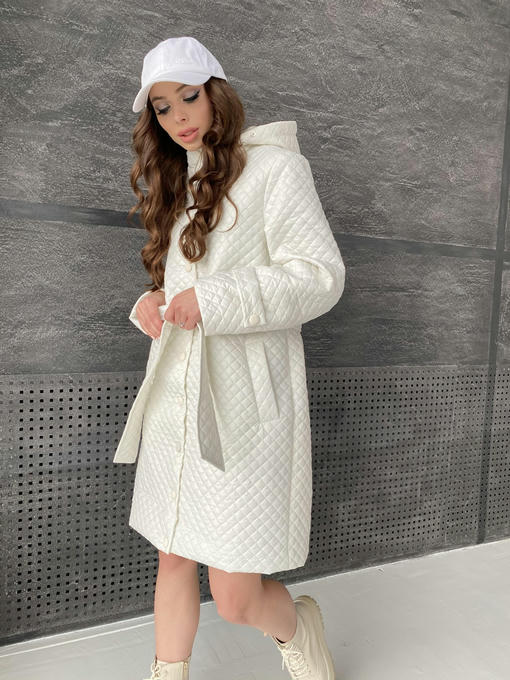 Стеганая мелким ромбом куртка изготовлена из качественной плащевой ткани прямого силуэта в классическом повседневном стиле, длиной выше колен.Стеганое пальто однобортное и застегивается на обтяжные кнопки.В данной модели стойка воротник и пристегивающийся на кнопки капюшон. По краю отлета капюшона кулиска.Рукава двухшовные, ширину низа рукавов можно регулировать за счет патика.На полочке расположены карманы – прорезные листочки. В стеганом пальто присутствуют шлевки и съёмный пояс, из основной ткани. Даная куртка подойдет для прогулок, работы, посещения различно рода мероприятий. Универсальная вещь для стильных городских образов модного сезона.