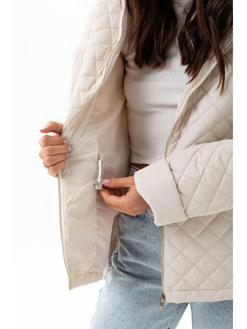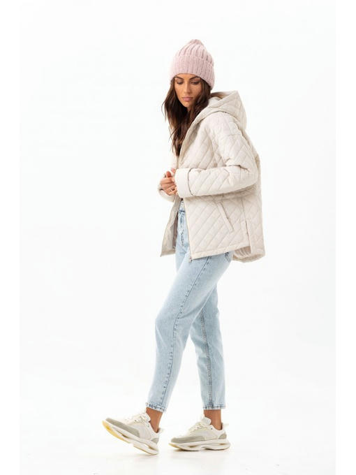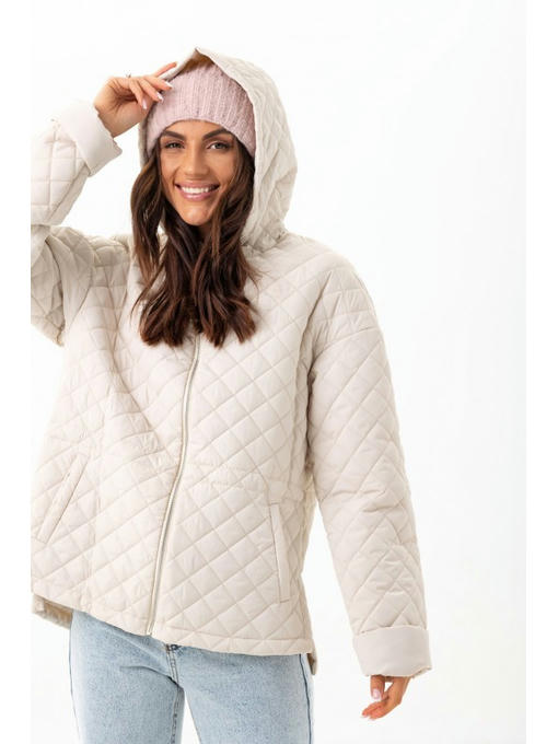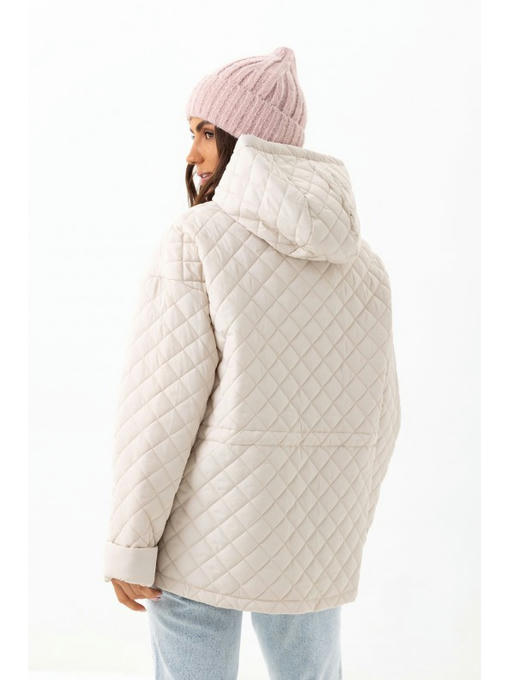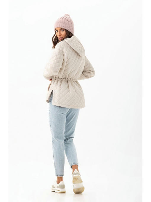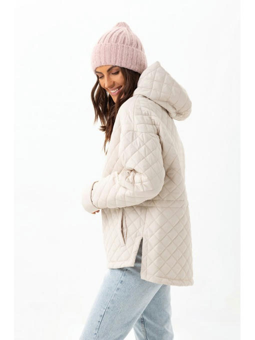 В стеганой куртке спущенная линия плеча. Длину рукава можно регулировать манжетом. Главная деталь курточки – удобный капюшон.