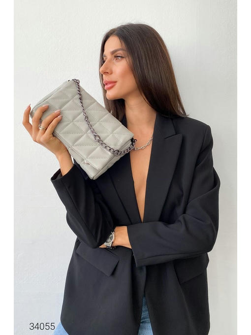 Прямоугольная стеганная сумка из качественной мягкой искусственной кожи. Ремень – цепочка, откидной клапан на кнопках с магнитом, основное отделение с застёжкой на молнию, внутри плотная подкладка. Основное отделение с двумя карманами: один с застёжкой на молнию, другой – открытый для мелких деталей. Длина цепочки 45 см. В комплекте съёмный регулируемый плечевой ремень, максимальная длина 135 см.