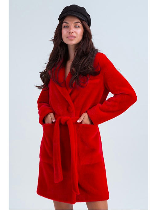 Стильное меховое пальто красное