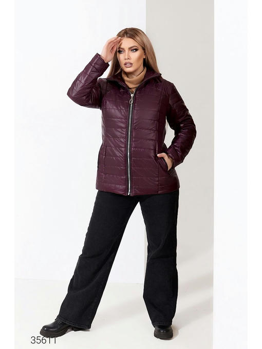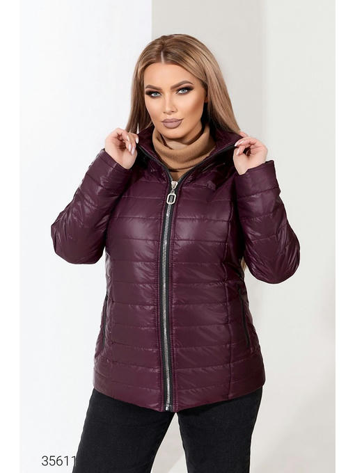 Стёганная куртка из влагостойкой плащёвой ткани на синтепоне. Ворот – стойка, боковые прорезные карманы с застёжкой на молнию. Есть подкладка, застёжка на молнию.