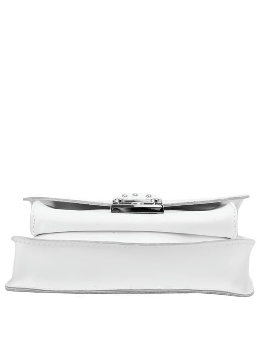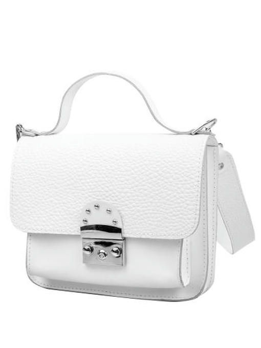 Современная и стильная сумочка-ридикюль из новой коллекции торговой марки ЭТЕРНО привлекает конструктивными особенностями и белым цветом. Лёгкая однотонная модель с фигурно изогнутой не жёсткой ручкой выглядит изящно. За счёт относительно широкого пристежного плечевого ремня её стиль может меняться по желанию владелицы – такую вещицу можно по-разному представить с собственном гардеробе: по-деловому женственно или более демократично в манере кэжуал. Аксессуар из качественной натуральной кожи выполнен без подкладки, радует глаз точностью линий наравне с мягкими скруглениями, своеобразным видом сбоку, крупной механической застёжкой. Серебристый блеск металлической фурнитуры добавляет яркости и уравновешивается открытыми срезами деталей