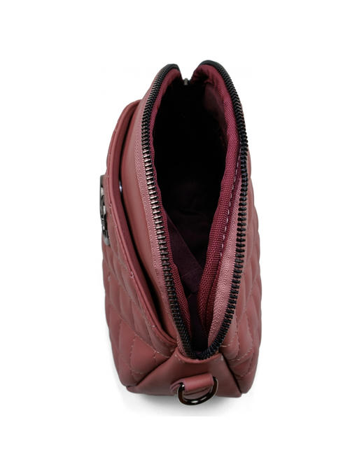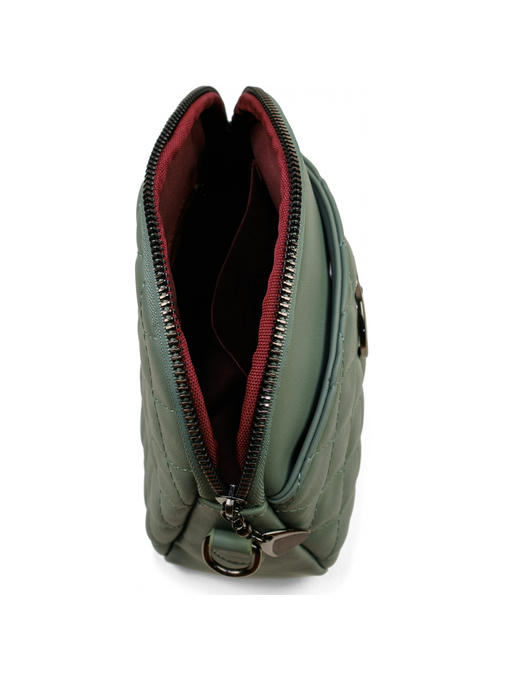 Стильная сумочка небольшого размера. Материал – кожзаменитель. Аксессуары – чернённые. На лицевой стороне сумочка украшена прострочкой ромбиками и большим втачным карманом на магнитной застёжке. Сумка закрывается на металлическую молнию. Одна длинная регулируемая ручка. Максимальная длина ручки – 120 см. Сумку можно носить cross body через плечо. Внутри – тканевая подкладка, одно большое отделение, с задней стороны – горизонтальный прорезной карман на молнии, с передней – карман для документов.