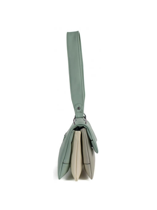 Классический женский клатч в пастельных тонах. Тщательно продуманный дизайн и безупречное исполнение. Материал – эко кожа. Аксессуары – никелированные. Клатч закрывается на три молнии и при помощи клапана на двух магнитных застёжках. Одна широкая нерегулируемая ручка. Высота ручки – 30 см. Дополнительно имеется длинная регулируемая ручка. Максимальная длина ручки – 140 см. На задней стороне расположен горизонтальный прорезной карман на молнии. Сумку можно носить cross body через плечо. Внутри – тканевая подкладка, три автономных отделения, каждое из которых закрывается на молнию.