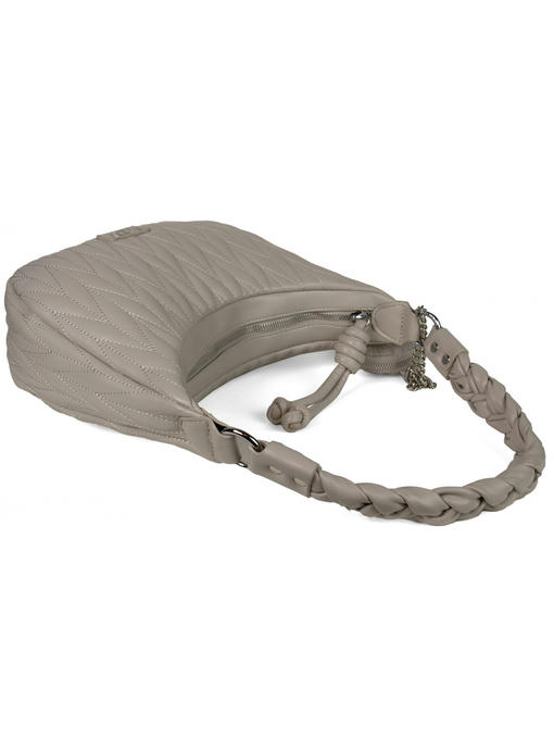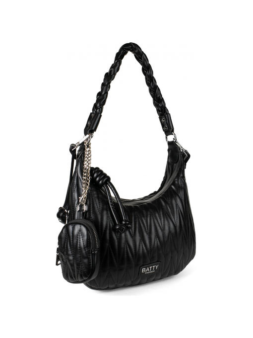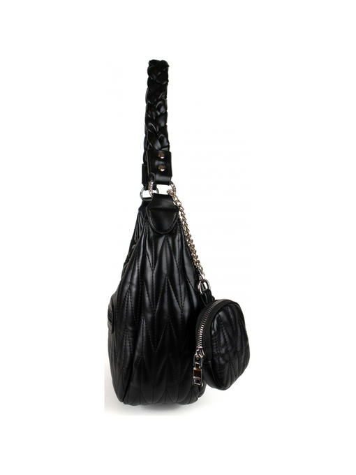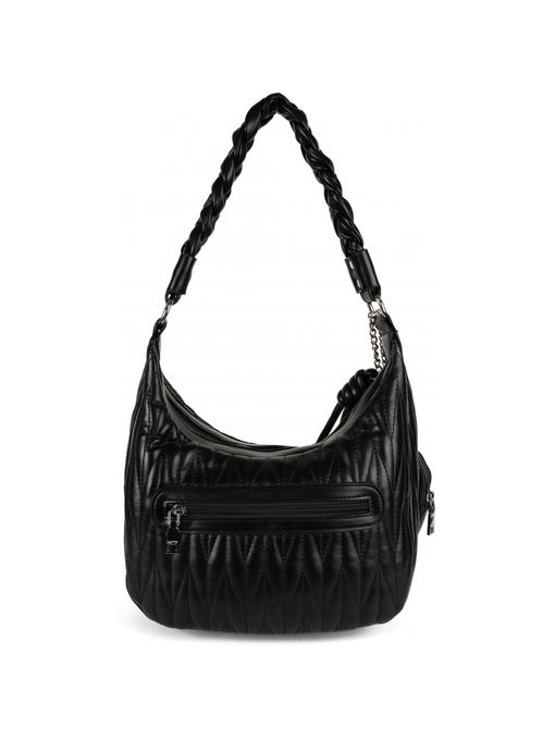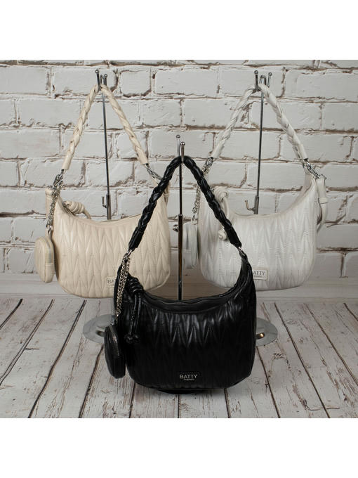 Стильная сумка среднего размера. Материал – эко кожа. Аксессуары – никелированные. Сумка закрывается на металлическую молнию с красивым плетённым бегунком. Сумка украшена вышивкой под известный бренд МиюМию. Одна средняя нерегулируемая плетённая ручка. Высота ручки – 30 см. Дополнительно имеется длинная регулируемая ручка. Сумка украшена съёмной монетницей. На задней стороне расположен горизонтальный прорезной карман на молнии. Внутри – тканевая подкладка, одно большое отделение. С задней стороны – горизонтальный прорезной карман на молнии с рамочкой из эко кожи, с передней стороны – карманы для мобильного телефона и документов.