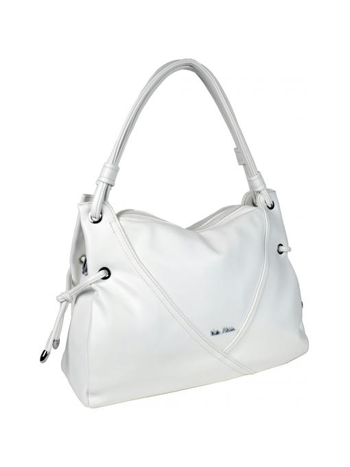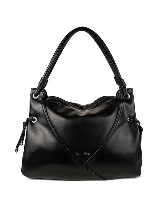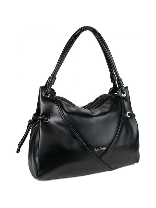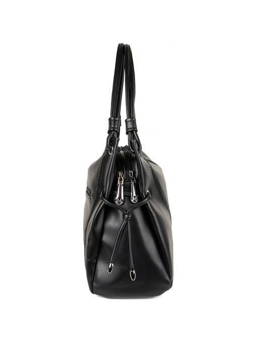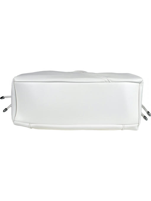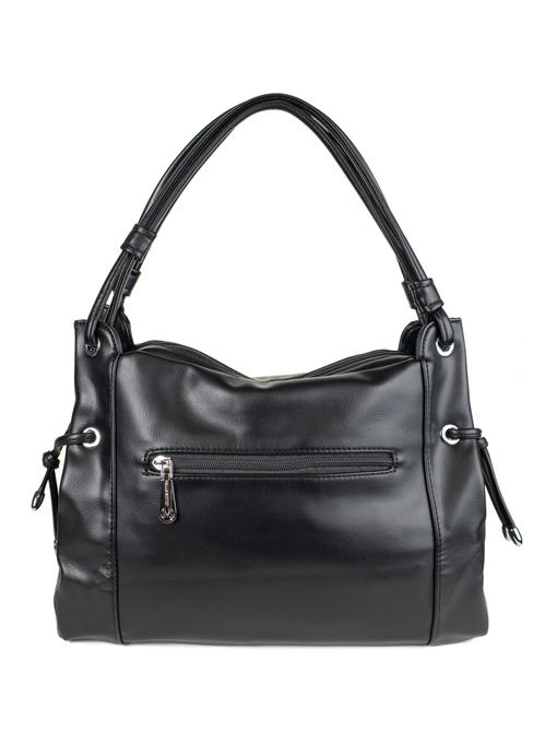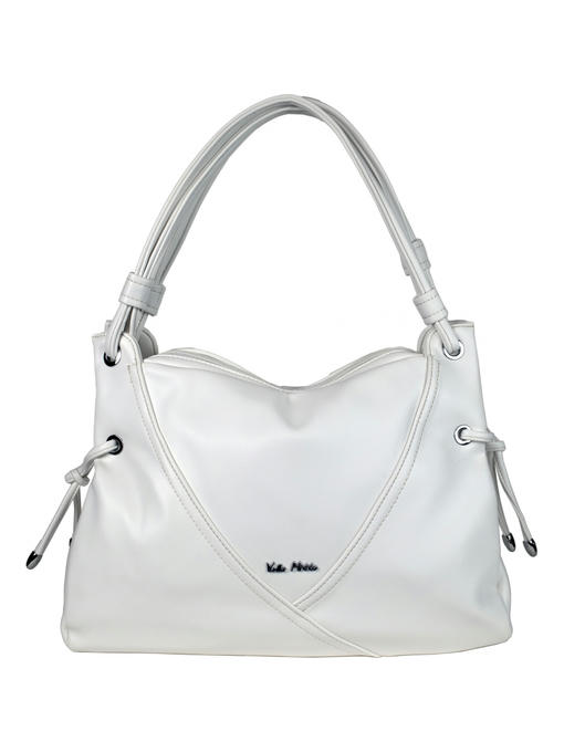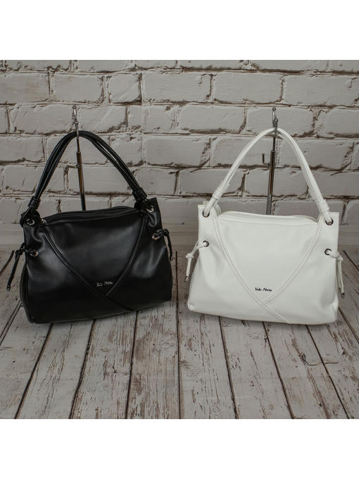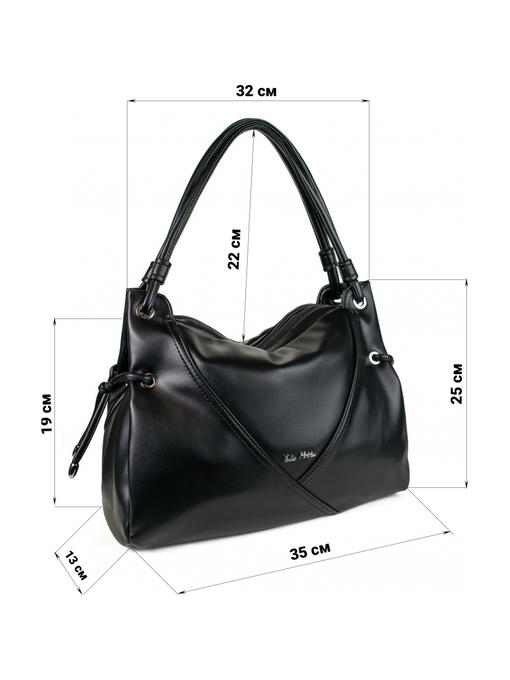 Стильная женская сумка среднего размера. Материал – эко кожа. Аксессуары – никелированные. Сумка закрывается на молнии. Две средние нерегулируемые ручки. Высота ручек – 22 см. Сумка украшена декоративными строчками в тон сумки. На задней стороне расположен горизонтальный прорезной карман на молнии. Внутри – тканевая подкладка, два автономных отделения, каждое из которых закрывается на молнию.В заднем отделении горизонтальный прорезной карман на молнии с рамочкой из эко кожи, в переднем отделении – карманы для мобильного телефона и документов.