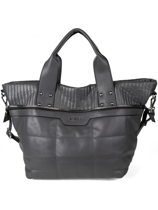 Мягкая женская сумка. Материал – эко кожа. Аксессуары – никелированные. Сумка закрывается на молнию. Две короткие нерегулируемые ручки. Высота ручек – 15 см. Дополнительно имеется длинная регулируемая ручка. Максимальная длина ручки – 135 см. Сумка украшена декоративными строчками в тон сумки. Внутри – тканевая подкладка, одно большое отделение. С одной стороны – горизонтальный прорезной карман на молнии, с другой стороны – карманы для мобильного телефона и документов. Все карманы с рамочкой из эко кожи.