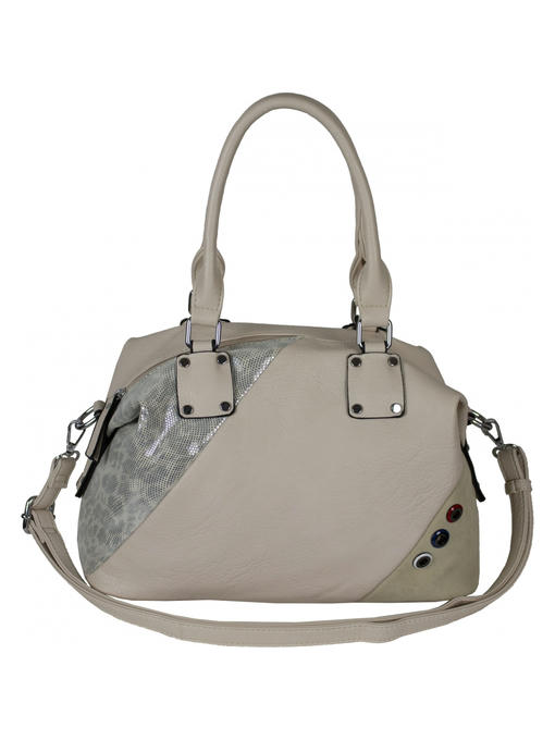 Аксессуары – никелировнные. Две короткие нерегулируемые ручки. Высота ручек – 20 см. Дополнительно имеется длинная регулируемая ручка. Сумка закрывается на молнию. На задней стороне расположен горизонтальный прорезной карман на молнии. Внутри – тканевая подкладка, одно большое отделение. С одной стороны- два кармана на молниях, один – прорезной карман на молнии, другой – в виде перегородки, с другой стороны – карманы для мобильного телефона и документов.