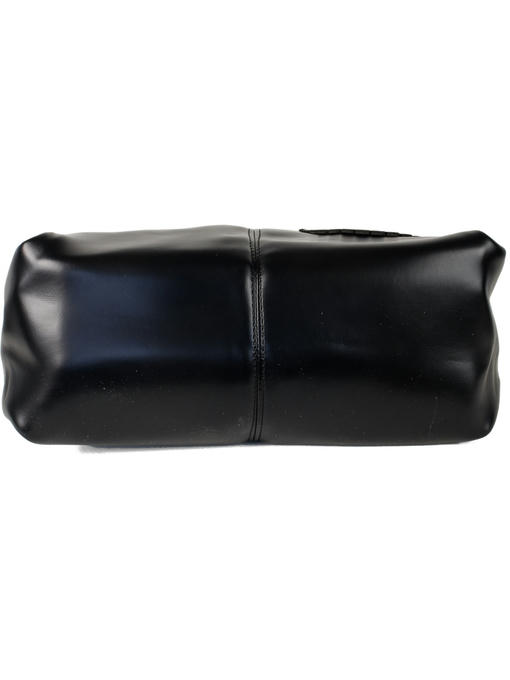 Мягкая сумочка среднего размера. Материал – мягкая эко кожа. Аксессуары – никелированные. Сумка закрывается на крупную металлическую молнию с декоративным бегунком. Одна средняя нерегулируемая присобранная ручка. Высота ручки – 15 см. Дополнительно имеется длинная регулируемая ручка. Максимальная длина ручки – 130 см. На лицевой стороне расположен маленький декоративный накладной карманчик с надписью. На задней стороне расположен горизонтальный прорезной карман на молнии. Внутри – тканевая подкладка, одно большое отделение. С задней стороны – горизонтальный прорезной карман на молнии с рамочкой из эко кожи, с передней стороны – карманы для мобильного телефона и документов.