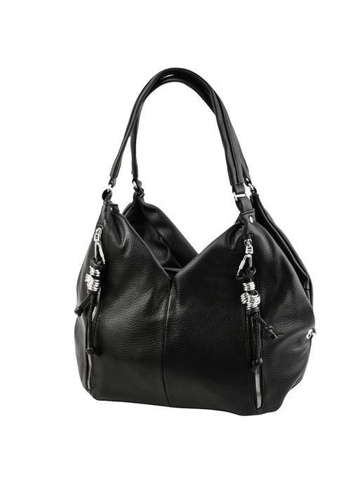 Количество основных отделений: 3. Внутри есть два открытых накладных кармана и один прорезной карман на молнии. На лицевой стороне есть два боковых вертикальных прорезных кармана на молнии. На тыльной стороне – один горизонтальный прорезной карман, который закрывается на молнию. Аксессуар можно носить на плече, в руке или на локте.