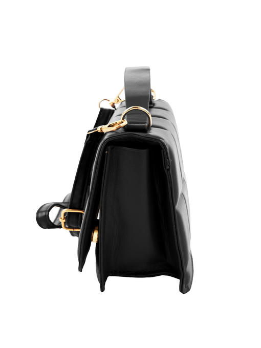 Размеры (X*Y*Z): 20*11*7 см. Материал: кожзам. Без подкладки. Цвет: черный. Цвет фурнитуры: золото. Количество основных отделений: 1. Изделие имеет съемный плечевой ремень. Максимальная длина ремня регулируется до 119 см. Сумка имеет несъемную ручку. Длина ручки – 19 см. Аксессуар пригоден для ношения в руке, на плече и через плечо.