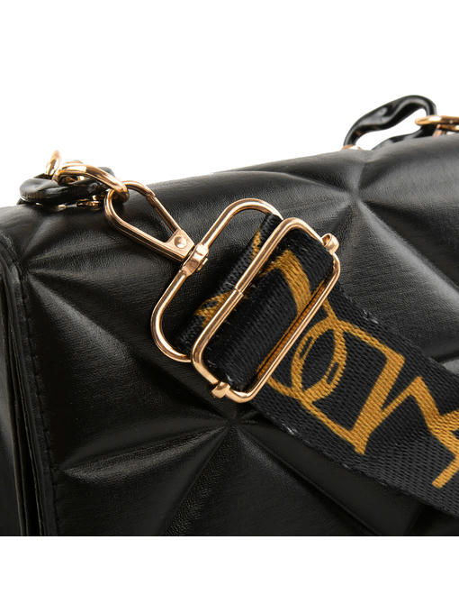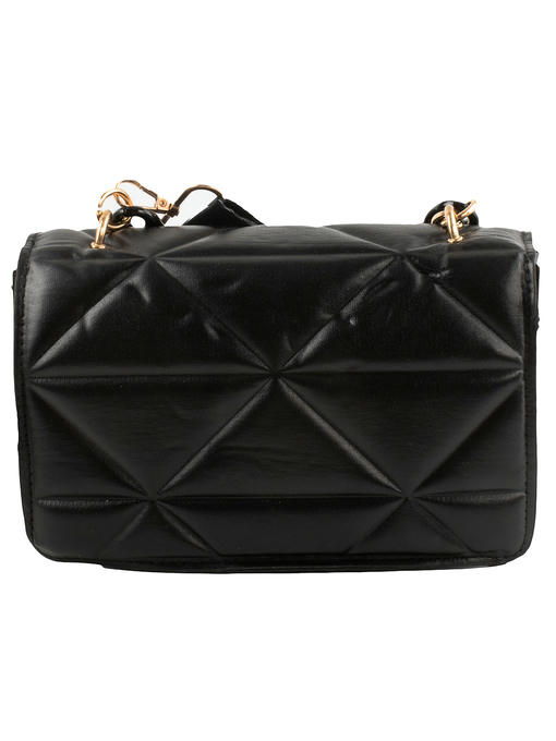 Размеры (X*Y*Z): 20*12*4,5 см. Материал: кожзам. Без подкладки. Цвет: черный. Цвет фурнитуры: золото. Количество основных отделений: 1. Изделие имеет съемный плечевой ремень. Максимальная длина ремня регулируется до 114 см. Аксессуар пригоден для ношения на плече и через плечо. Сумка закрывается с помощью магнитных застежек. Документы формата А4 не помещаются в аксессуар. Изделие упаковано в полиэтиленовый пакет.