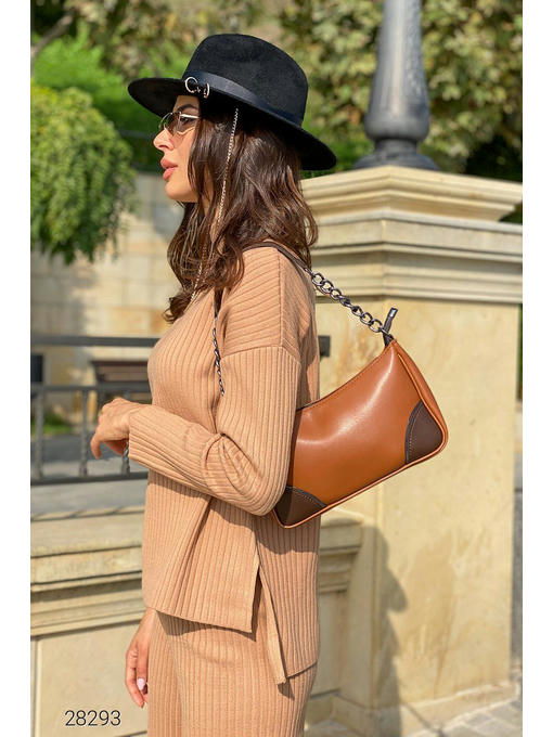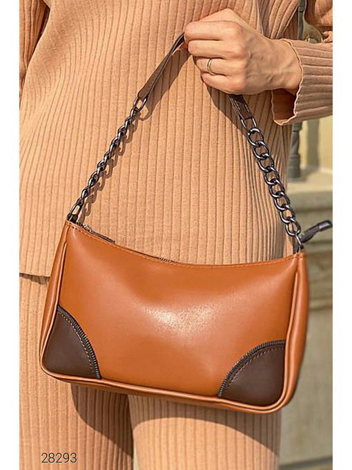 Для самого необходимого. Внешний карман, два внутренних кармана – открытый и с застёжкой на молнию. Есть подкладка, застёжка на молнию. В комплекте плечевой ремень, длина 120 см.