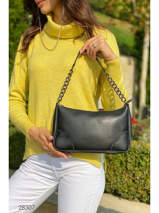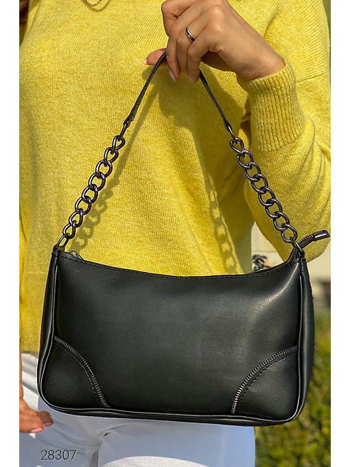 Для самого необходимого. Внешний карман, два внутренних кармана – открытый и с застёжкой на молнию. Есть подкладка, застёжка на молнию. В комплекте плечевой ремень, длина 120 см.