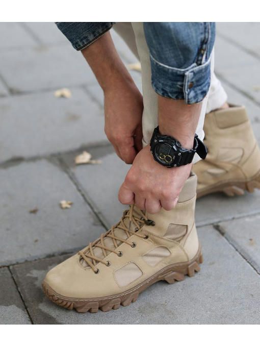 Ботинки тактические Бежевые, украинского производства. Топовое качество, верх комбинированный: вставки из натуральной кожи и водоотталкивающий материал Cordura, поэтому ботинки подойдут в любую погоду и сохранят ноги сухими. Язычок из флиса, прошитый доверху. Подошва ТЭП (высота 3 см; ) – долговечная, прошитая, износостойкая, рифленая и суперэластичная. Высота голенища 15,5 см; – прекрасно фиксируют стопу. Внутренняя подкладка из текстиля, мягкая стелька, просиликоненная. Ботинки очень комфортные на ноге и легкие, вес полупарка всего 440г.