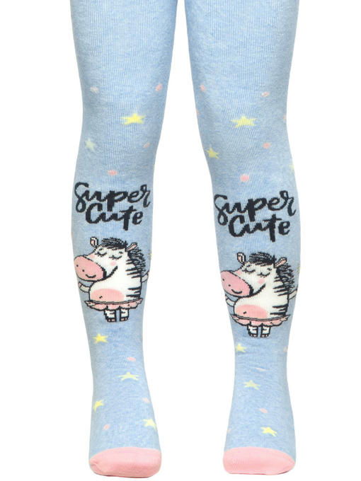 Мягкие махровые колготки для девочки связаны из натурального хлопка. Легкость при надевании и комфортное облегание по ножке обеспечивает добавка синтетических волокон. Плотный нежный плюш сохранит малышку в тепле даже в самые сильные морозы. Детские колготки выполнены в голубом цвете с милым принтом зебра.