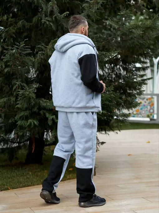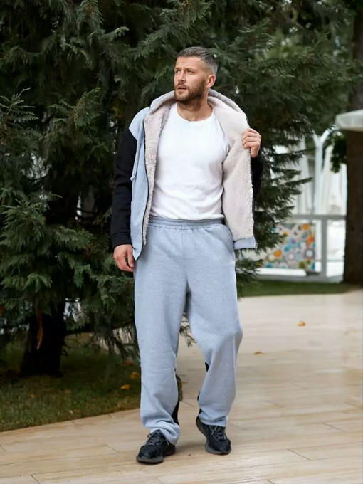 Брюки тринитка на флисе свободного кроя с широким поясом – резинкой.