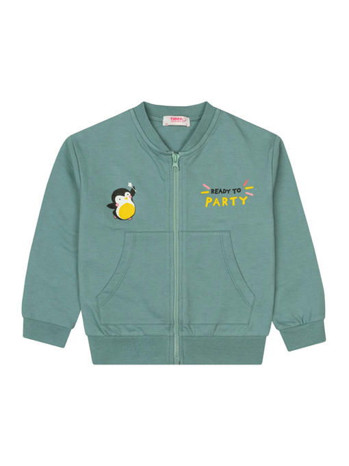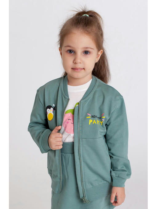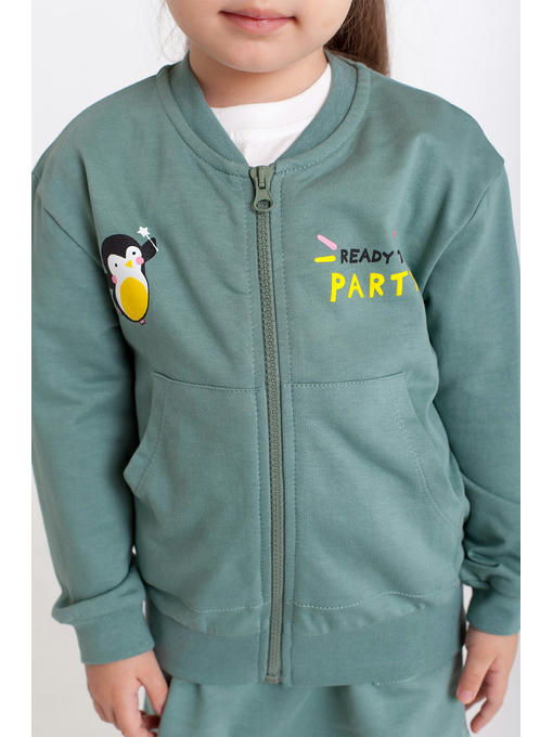 Жакет на молнии для девочек выполнен из 100% плотной хлопковой ткани футер 2-х нитка (180 г/м2). Кофта прямого кроя, рукава и пояс на эластичных манжетах, предусмотрены удобные накладные карманы. Детская толстовка декорирована принтом пингвин.