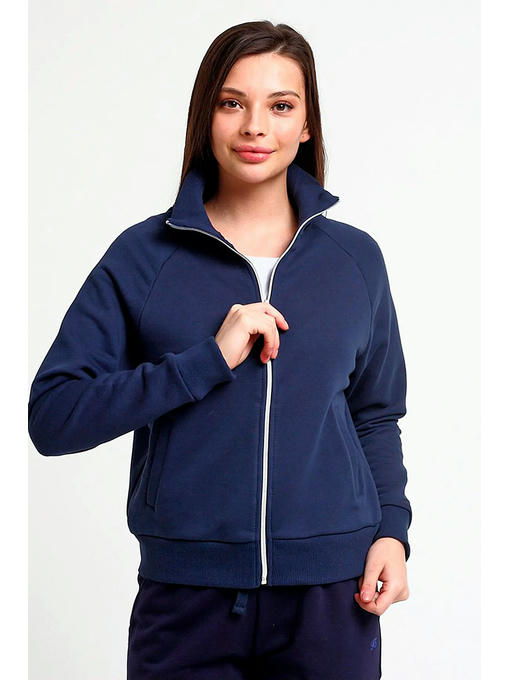 Женская толстовка классического кроя выполнена из комфортного трикотажного полотна футера. Рукава реглан с манжетами. Застежка-молния спереди по всей длине изделия. Воротник стойка. Вместительные карманы на полочках в районе талии