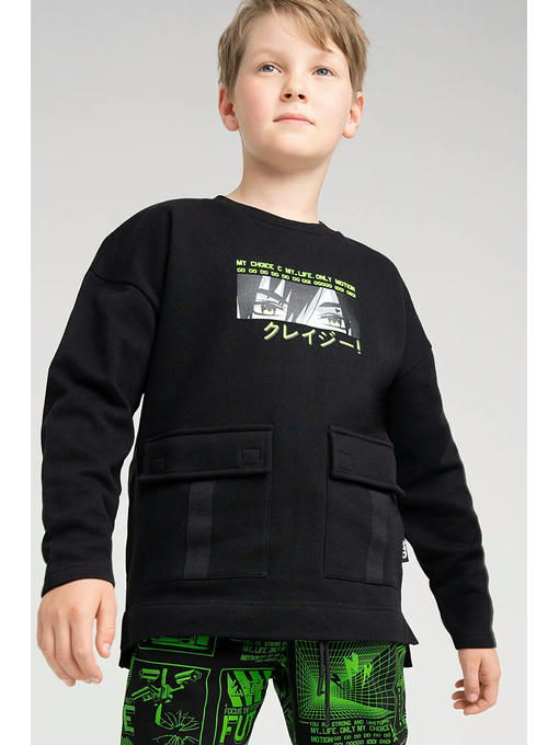 Свитшот из футера с начесом. 100% хлопок. Карманы с клапанами. Спущенный рукав. Посадка comfort fit – свободный крой