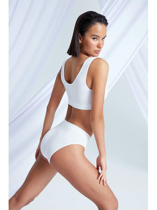 Бесшовный топ с широкими бретелями и съемными формованными вкладышами, выполненный из мягкой эластичной микрофибры. Фронтальная часть модели декорирована надписью “Minimi”. Современные бесшовные технологии и материалы позволяют изделию идеально облегать тело, не оставляя следов от боковых швов, создавая максимальный комфорт при активной жизни и во время отдыха