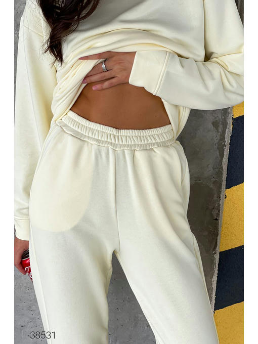 Ориентировочные замеры по готовому изделию: универсальный 42 – 48 (свитшот: ОГ – 112, длина – 67, длина рукава от горл. – 75; штаны: ОТ 62 – 90, ОБ – 108, длина – 100)