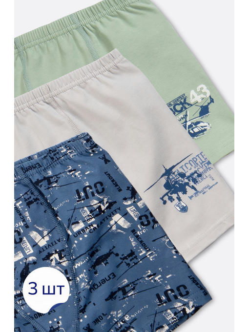 Набор детских трусов 3 шт. для мальчиков и подростков сшит из трикотажа высокого качества, прочного и мягкого. Натуральный хлопок позволяет коже дышать. Добавление эластана способствует лучшей прочности. Ткань не боится частых стирок. Боксеры Baykar для мальчиков и подростков выполнены в спокойных оттенках и украшены принтом вертолеты.