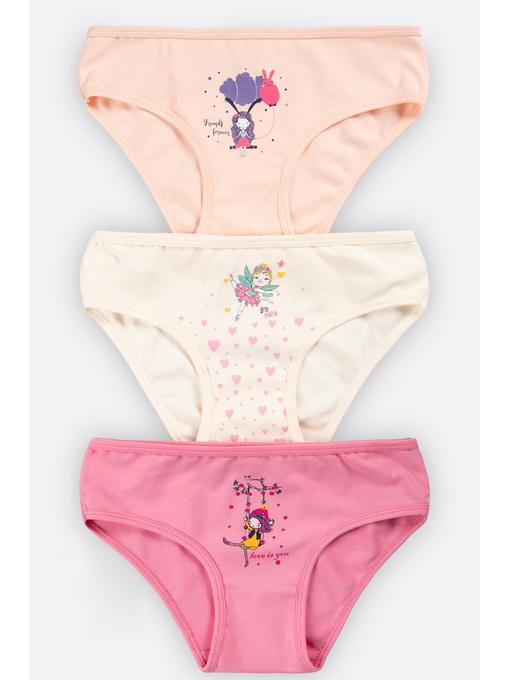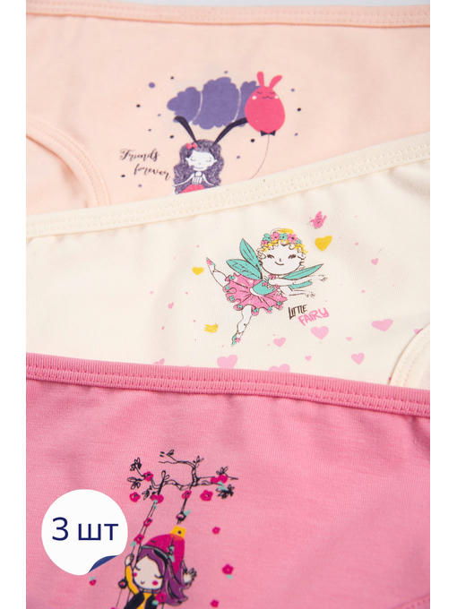 Набор хлопковых трусиков из 3 штук для девочек – уют и комфорт в любой ситуации. Слипы выполнены в пастельных цветах и украшены милым принтом феи и надписями. Нижнее белье не сковывает движений и позволяет ребенку оставаться активным на протяжении всего дня благодаря классической средней посадке.